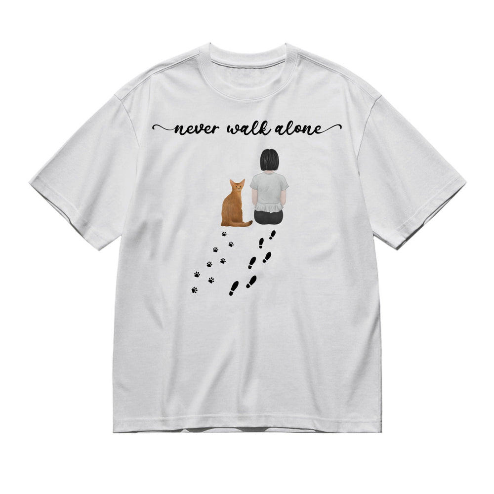 Never walk alone (Female / Male / Cat / Back)-200g High-Quality 100% Cotton T-Shirt with Heat Transfer Printing
